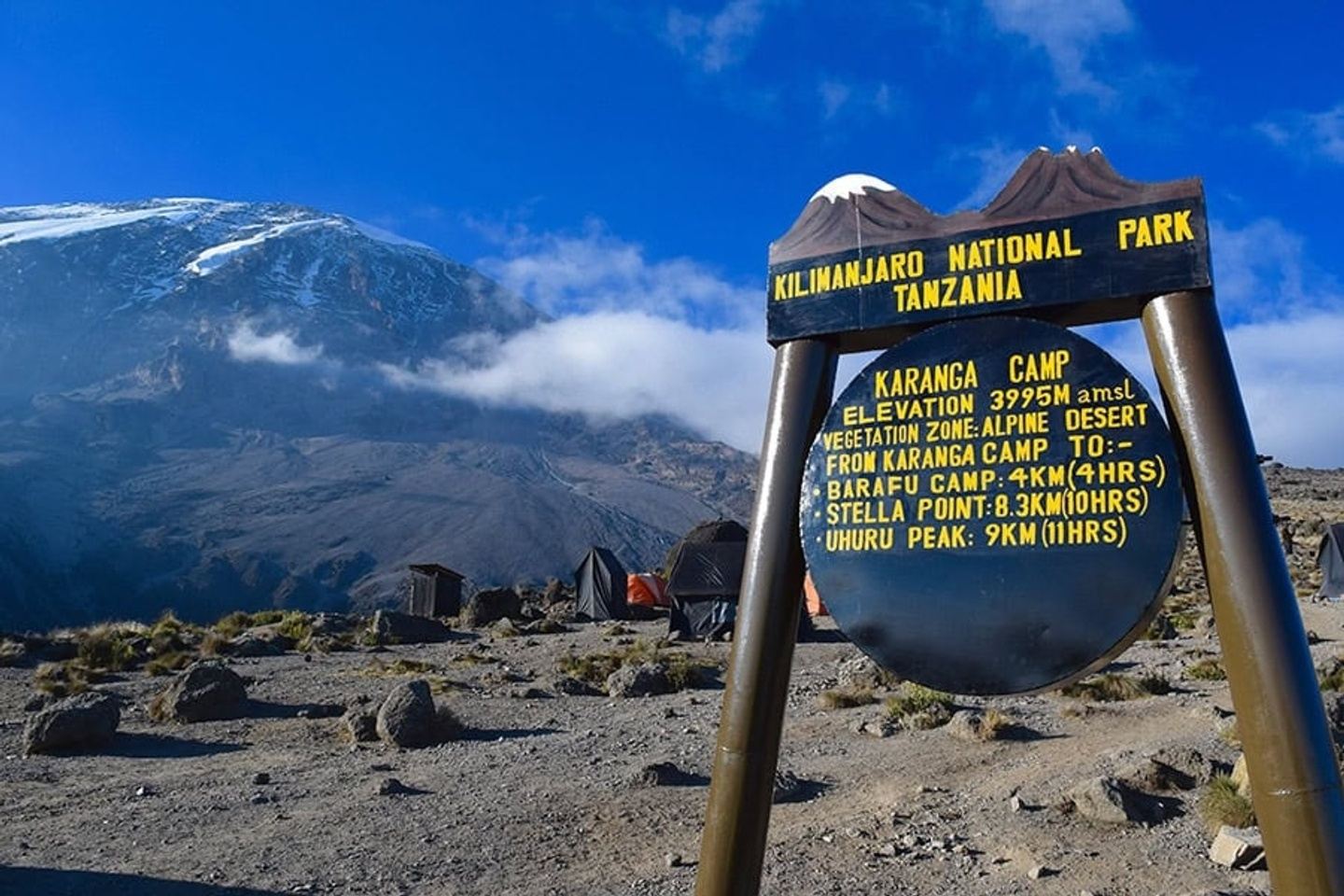 Climb the Barranco Wall and trek across alpine desert terrain to Karanga Camp.